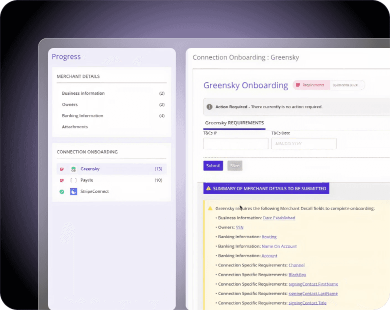 Enrich and transmit merchant data to fintech providers without code-heavy integrations or rework.